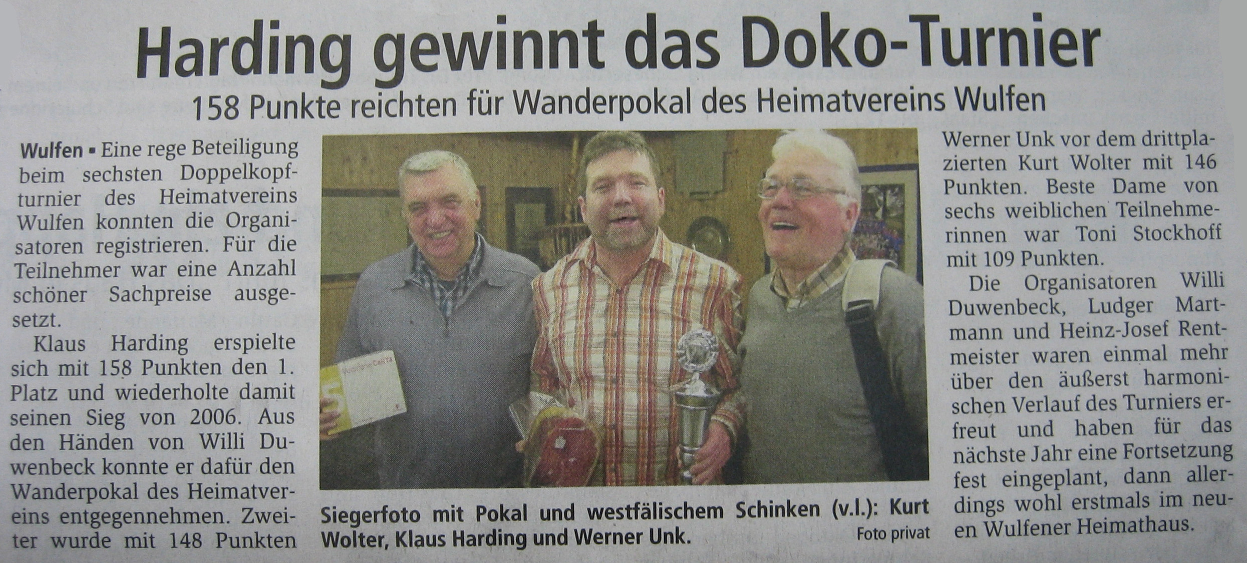Harding gewinnt Doko-Turnier 158 Punkte reichten für Wanderpokal By Lisa23. März 2010Presse Quelle: Dorstener Zeitung, 23.03.2010