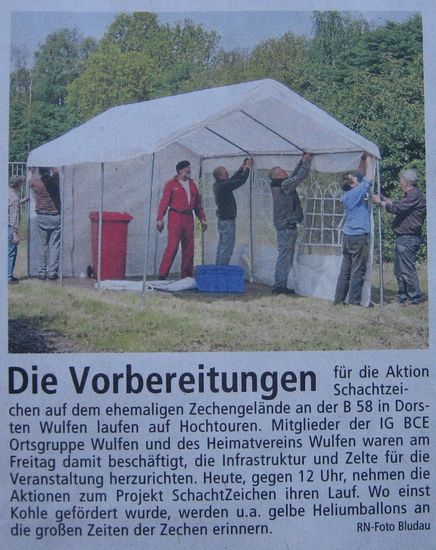 Vorbereitungen SchachtZeichen laufen auf Hochtouren By Lisa22. Mai 2010Presse Quelle: Dorstener Zeitung, 22.05.2010