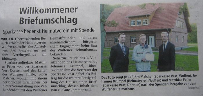 Willkommener Briefumschlag Spende für das Heimathaus By Lisa10. Juni 2010Presse Quelle: Dorstenr Zeitung, 10.06.2010