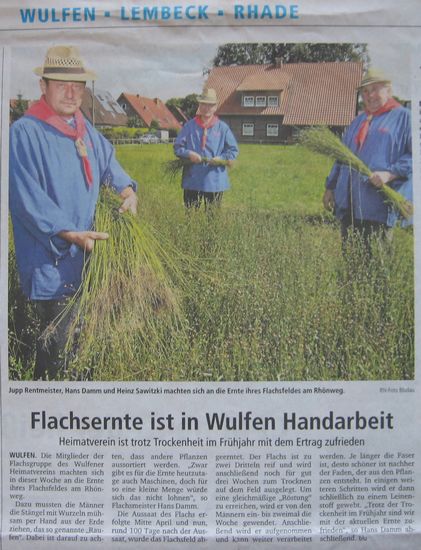 Flachsernte ist in Wulfen Handarbeit By Lisa20. August 2011Presse Quelle: Dorstener Zeitung, 20.08.2011